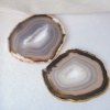 Každý podtácek z achátu má zlatě obarvenou hranu. Rozzáří každý stůl. Může fungovat jako podložka pod šperky, jako podtácek pod kávu a nebo jako bezpečná podložka pod svíčku Achát do našeho života dodává rovnováhu. Podporuje sebedůvěru, posiluje soustředění a správná rozhodnutí, dodává odvahu a upřímnost k sama sobě. Pomáhá překonávat negativní pocity, zlobu, odstraňuje vnitřní napětí. Achát Vám dodá pocit jistoty a bezpečí. Balení obsahuje jeden kus podtácku. Každý podtácek je originál, můžou se proto tvarově i strukturou měnit od těch na obrázku, jejich průměr je minimálně 8 cm. Šedá - cca 8cm Modrá- cca 10cm