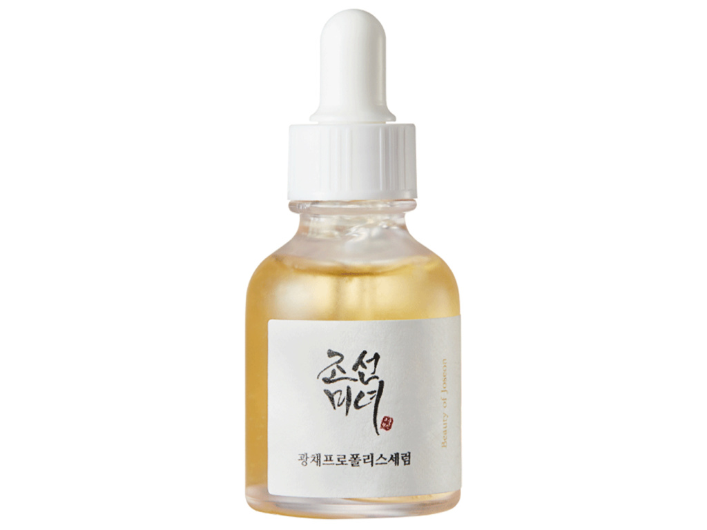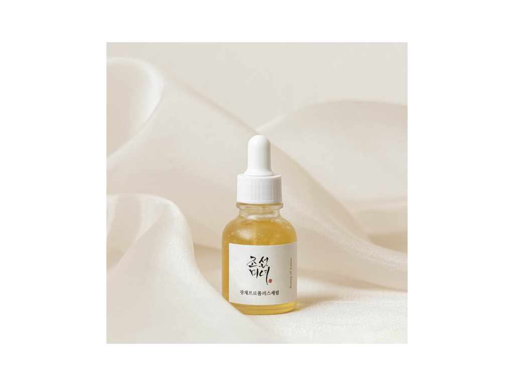 Beauty of Joseon - Glow Serum Propolis and Niacinamide - rozjasňující sérum na obličej, které zesvětluje pigmentové skvrny, redukuje zarudnutí a navrací pleti její přirozený lesk. Na bázi extraktu z propolisu (v koncentraci 60 %), který urychluje přirozený proces regenerace a stanoví efektivní základ pro ostatní aktivní složky: niacinamid v koncentraci 2 % a derivát kyseliny salicylové – betain salicylát v koncetraci 0,5 %, které čistí ucpané póry, regulují práci mazových žláz, snižují nadměrnou sekreci kožního mazu a předchází vzniku nedokonalostí. Přípravek byl obohacen o řadu rostlinných extraktů.