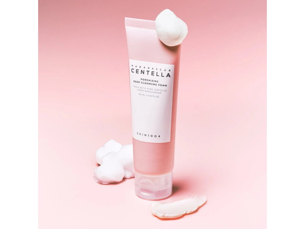 SKIN1004 Madagascar Centella Poremizing Deep Cleansing Foam je intenzivně čisticí pěna navržená pro pleť se sklony k rozšířeným pórům a nadměrné tvorbě mazu. Obsahuje Centella Asiatica z Madagaskaru, která zklidňuje a posiluje pokožku, a růžovou sůl z Himalájí, bohatou na minerály, která pomáhá jemně, ale účinně odstranit nečistoty a maz z hloubky pórů.