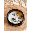 Výhradně z přírodního vosku ze sójových bobů, který neobsahuje žádné pesticidy, herbicidy ani parafín a je biologicky odbouratelný. Používáme silice a esenciální oleje. Knoty jsou z bavlny s přidaným papírovým jádrem, které zajistí rovnoměrné hoření. Hoří o polovinu pomaleji něž běžné parafínové svíčky stejné velikosti a při hoření se do ovzduší uvolňuje až o 99% méně sazí. Naše svíčky jsou veganské neobsahují žádné živočišné produkty, nejsou testované na zvířatech. Obsah svíčky je 120ml, sklenice je hnědá tzv.lékovka s černým plastovým víčkem.