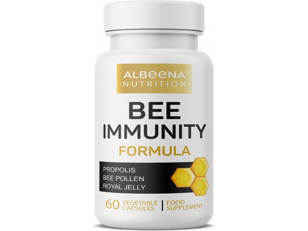 Kapsle Včelí imunita obsahují jedinečnou kombinaci výživných látek tří včelích produktů – propolisového extraktu, včelího pylu a lyofilizované mateří kašičky.